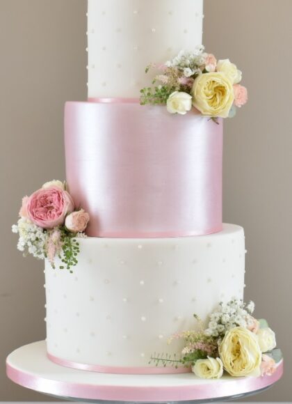 Cake designer Linda Glitherow offers a bespoke cake design service from her home cake studio in Crowland, Lincolnshire. Consultation appointments and complimentary cake tastings for wedding cakes are held there and you’ll be made to feel most welcome by Linda in this relaxed setting.